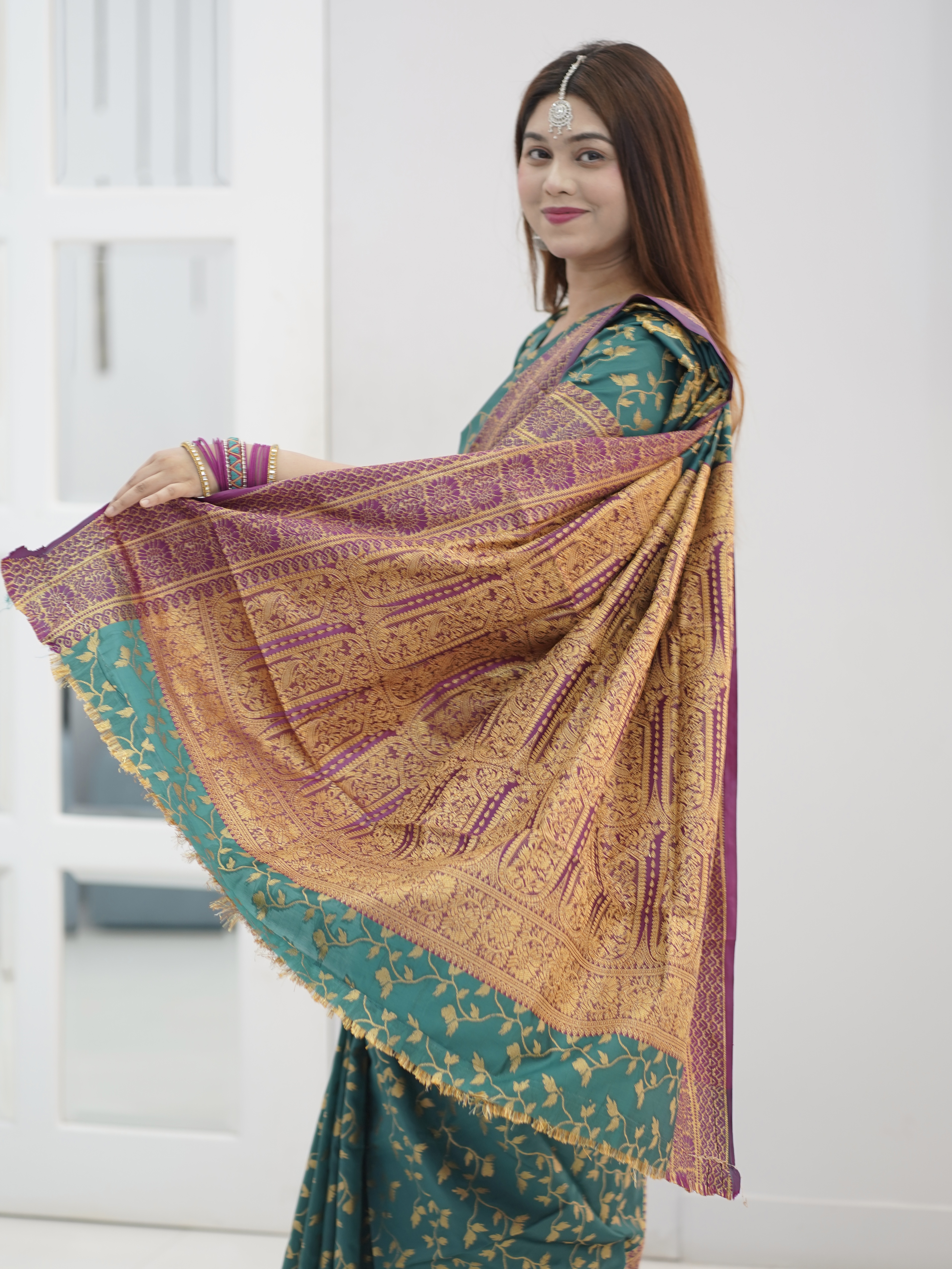 প্রিমিয়াম কাশ্মীরি লতা কাতান শাড়ি